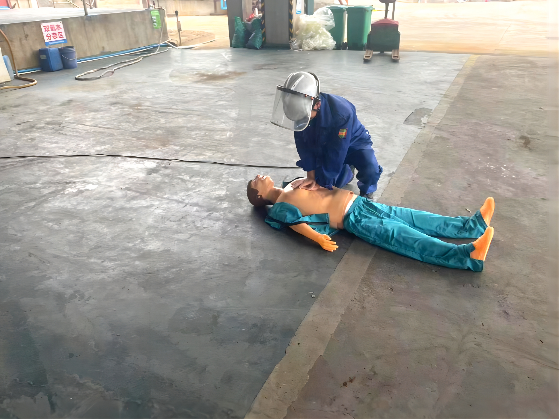 人員觸電演練:附近正在作業(yè)的同事發(fā)現(xiàn)有人員觸電,迅速斷開該電纜線電源開關(guān),隨后立即組織人員報(bào)120并對(duì)受傷者進(jìn)行心肺復(fù)蘇,,并轉(zhuǎn)移至廠區(qū)外等待120急救車。