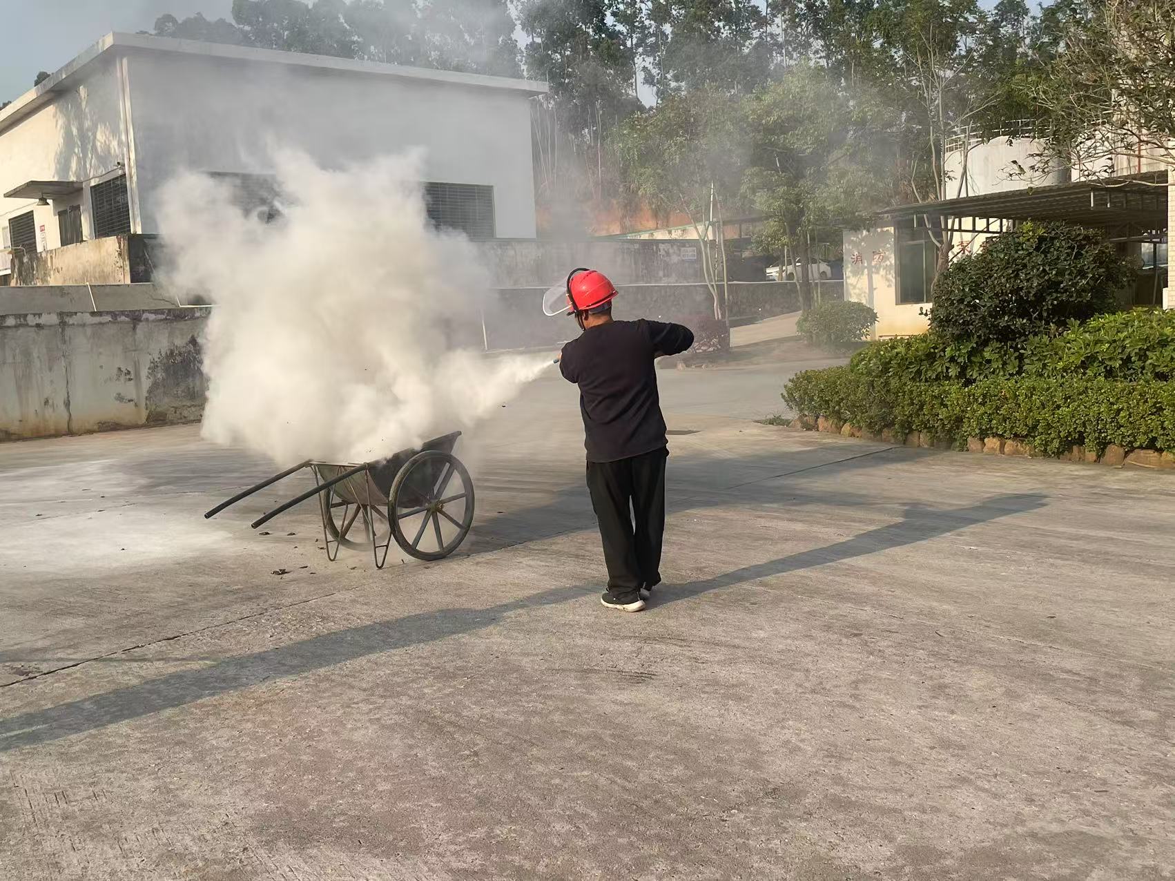 安環(huán)部經(jīng)理李偉新進(jìn)行滅火器使用方法及注意講解,指導(dǎo)演練人員由10米外持滅火器奔向火場進(jìn)行滅火,由上風(fēng)向接近著火點,站在上風(fēng)處1.5米—2米處用干粉滅火器撲救初起火災(zāi)。人員排隊依次進(jìn)行滅火實操演練。