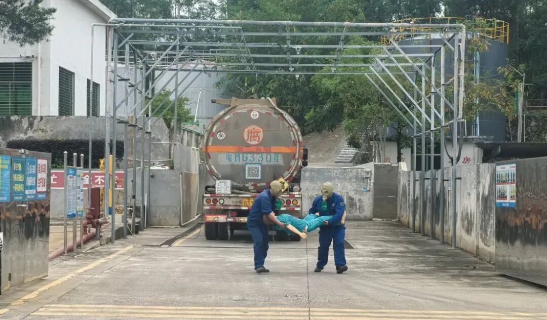 搶險(xiǎn)救災(zāi)組接到命令后,立即穿戴好防化服趕赴現(xiàn)場,使用消防水霧對泄漏部位進(jìn)行噴淋壓制。與此同時(shí),醫(yī)療救護(hù)組也到達(dá)現(xiàn)場對受傷員工進(jìn)行心肺復(fù)蘇等搶救措施。